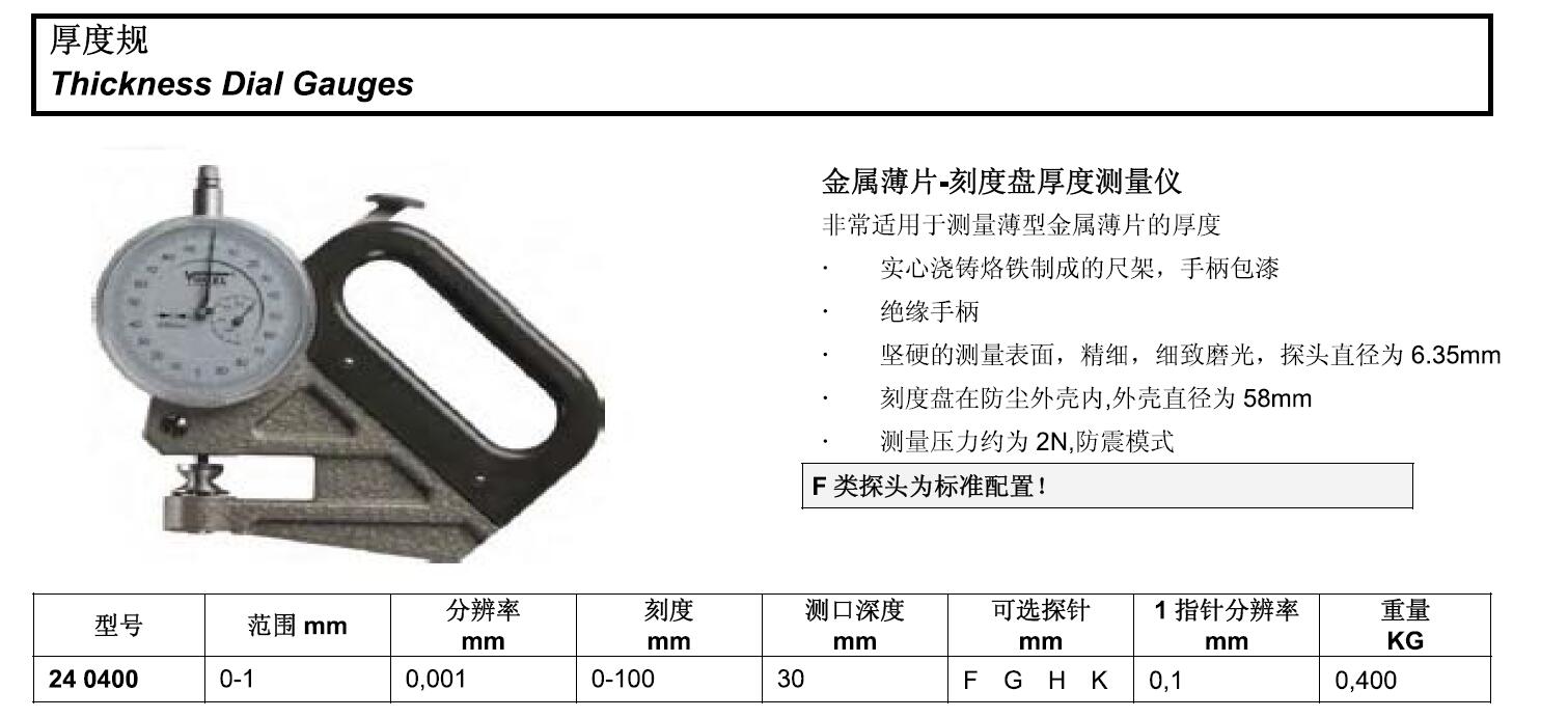·非常适用千测量薄型金属薄片的厚度 ·实心浇铸烙铁制成的尺架·手柄包漆 ·绝缘手柄实心浇铸 ·坚硬的测量表面·精细·细致磨光·探头直径为6·35mm ·刻度盘在防尘外壳内·外壳直径为58mm ·测量压力约为2N·防簇模式