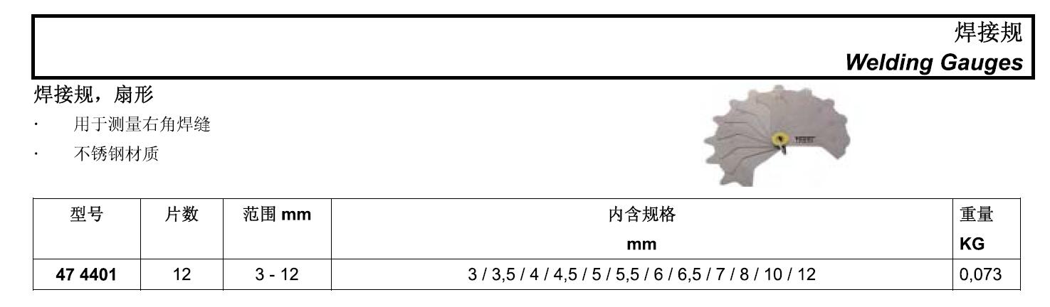 ·焊接规 ·扇形 ·用千测量右角焊缝不锈钢材质