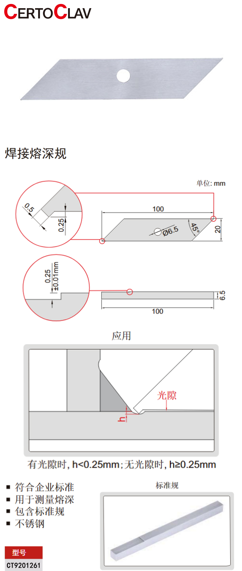 ·符合企业标准; ·用于测量熔深; ·包含标准规; ·不锈钢
