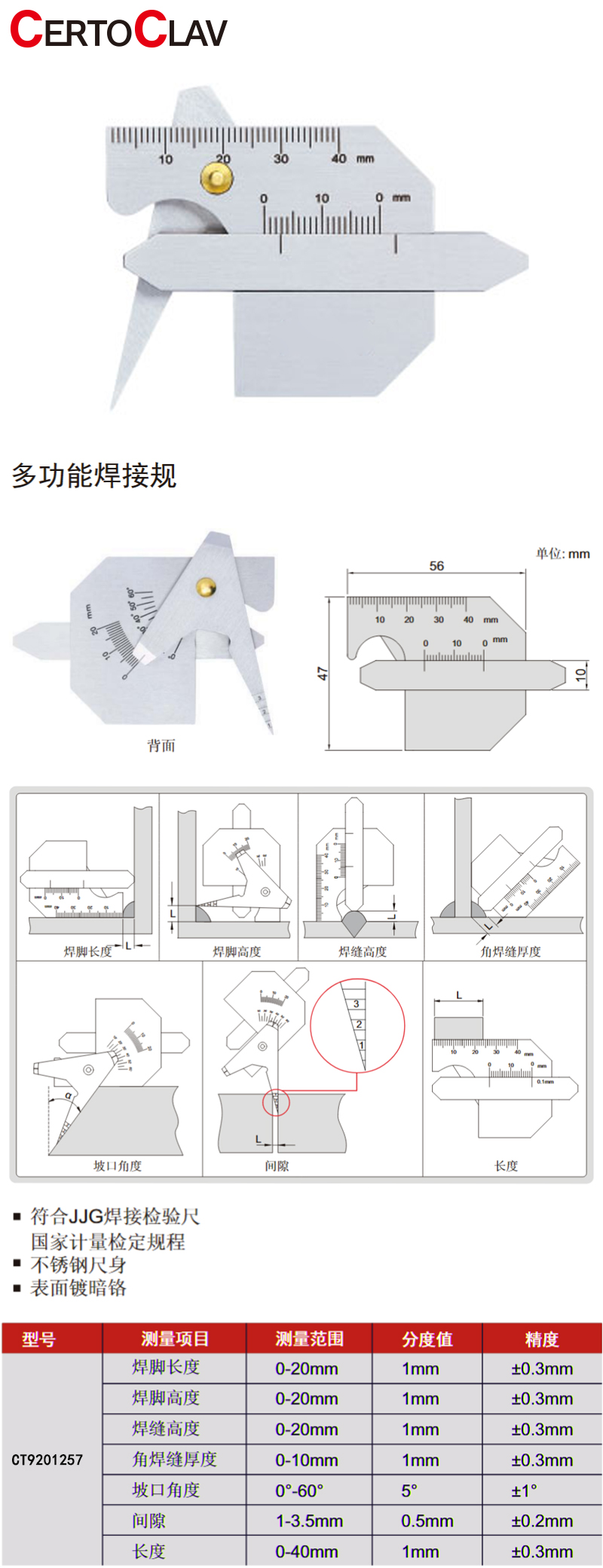 ·符合JJG焊接检验尺国家计量检定规程;