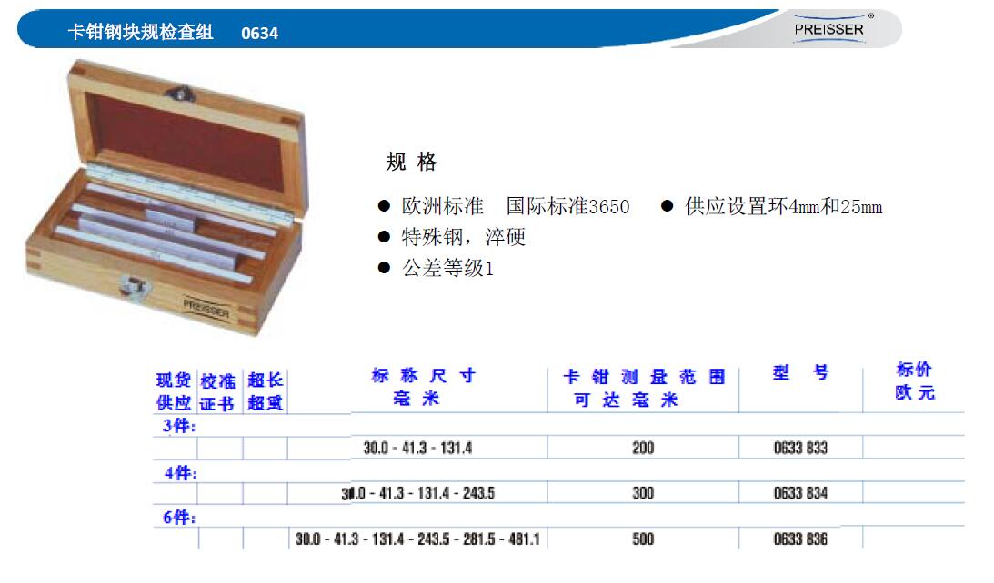 ·欧洲标准国际标准3650 ·特殊钢,淬硬 ·公差等级1 ·供应设置环4mm和25mm