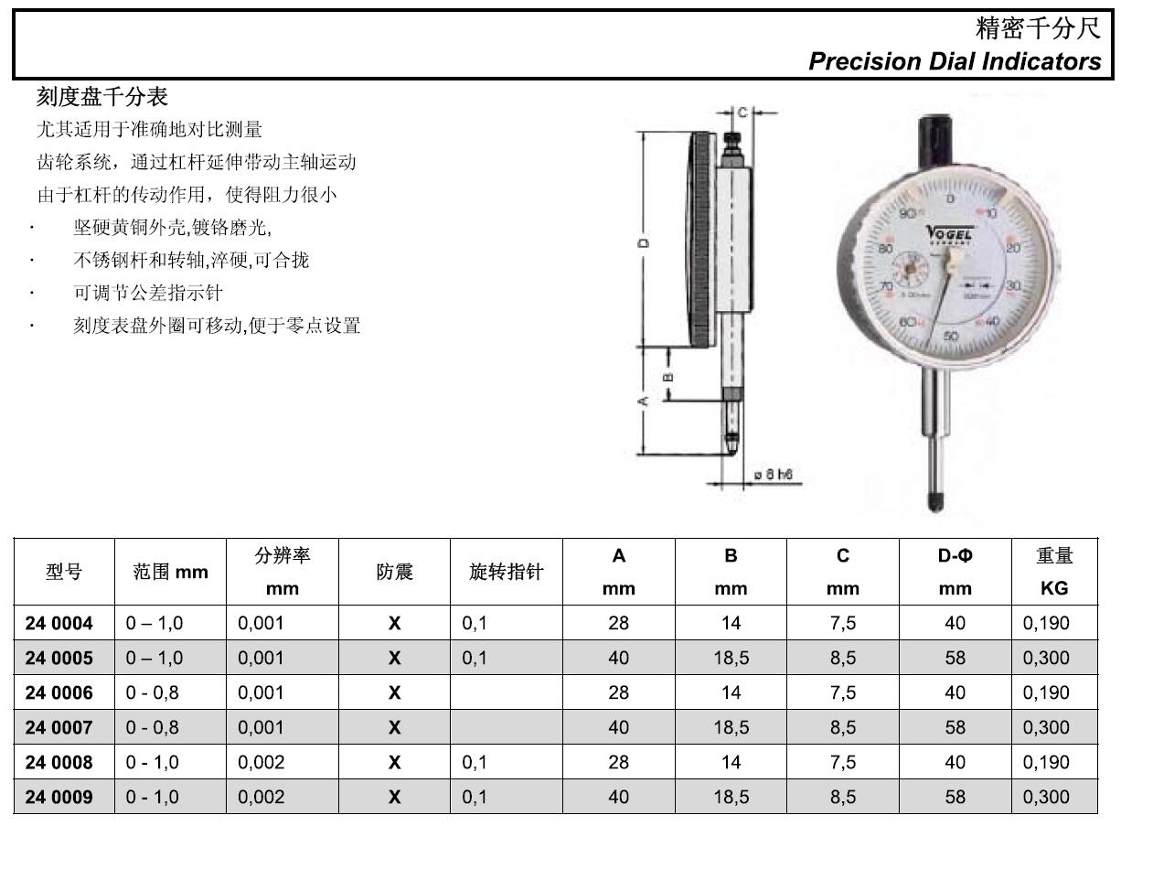 规格:  0-1.0mm 0.002mm 制造商型号:  24 0009
