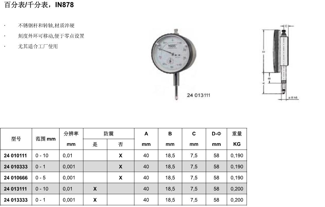 ·不锈钢杆和转轴材质淬硬 ·刻度外环可移动·便于零点设置 ·尤其适合工厂使用
