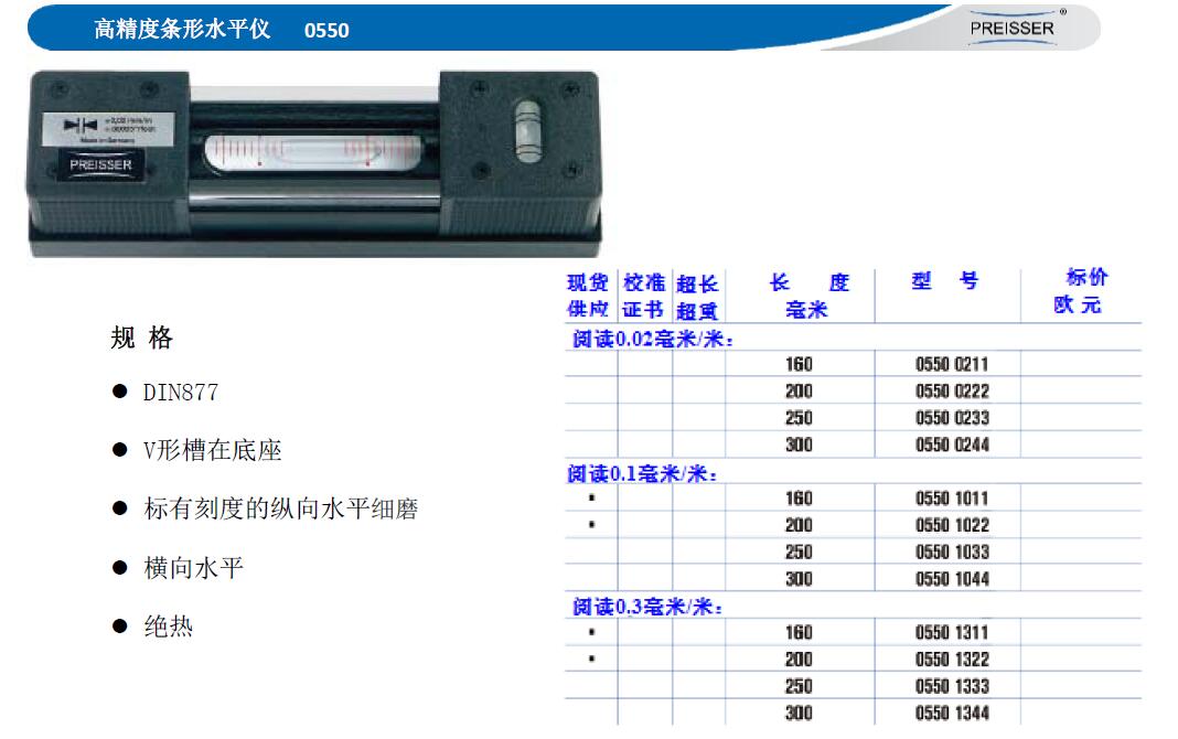 ·DIN877 ·V形槽在底座 ·标有刻度的纵向水平细磨 ·横向水平 ·绝热