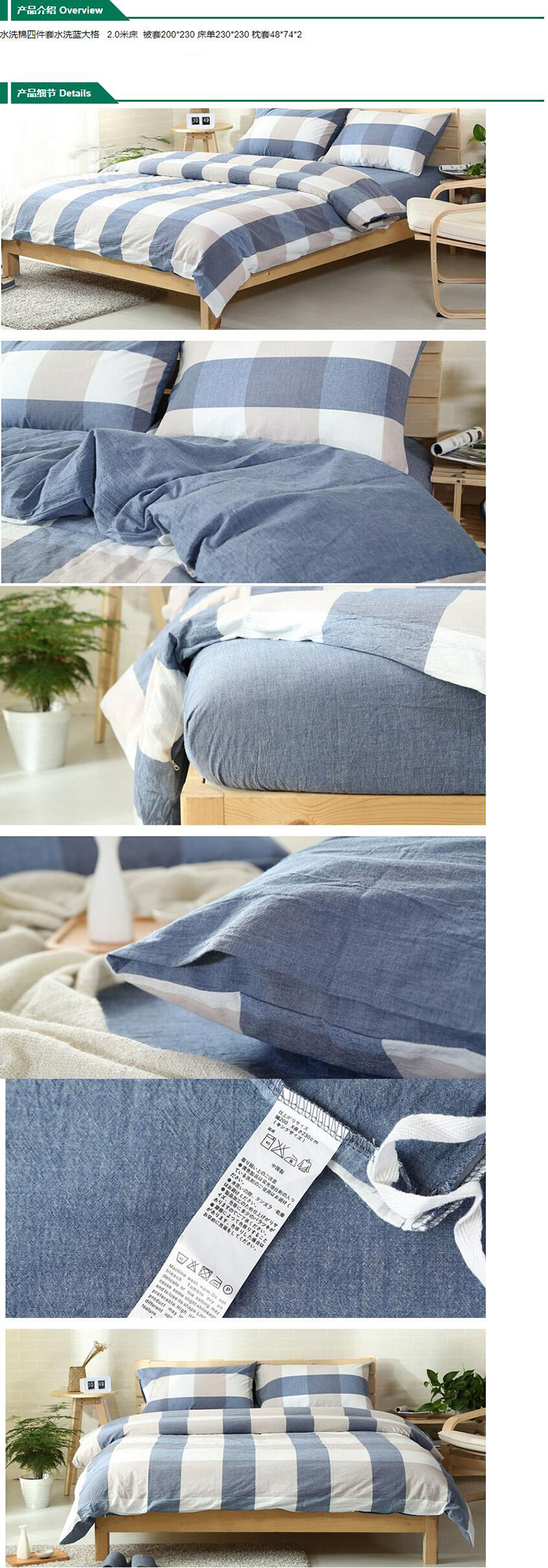 ·水洗棉四件套水洗蓝大格2.0米床被套200×230床单230×230枕套48×74×2