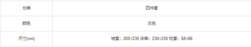 ·灰色 ·适用1.5米床 ·被套2x2.3米,床单2.3x2.3米,枕套58x88cm两个