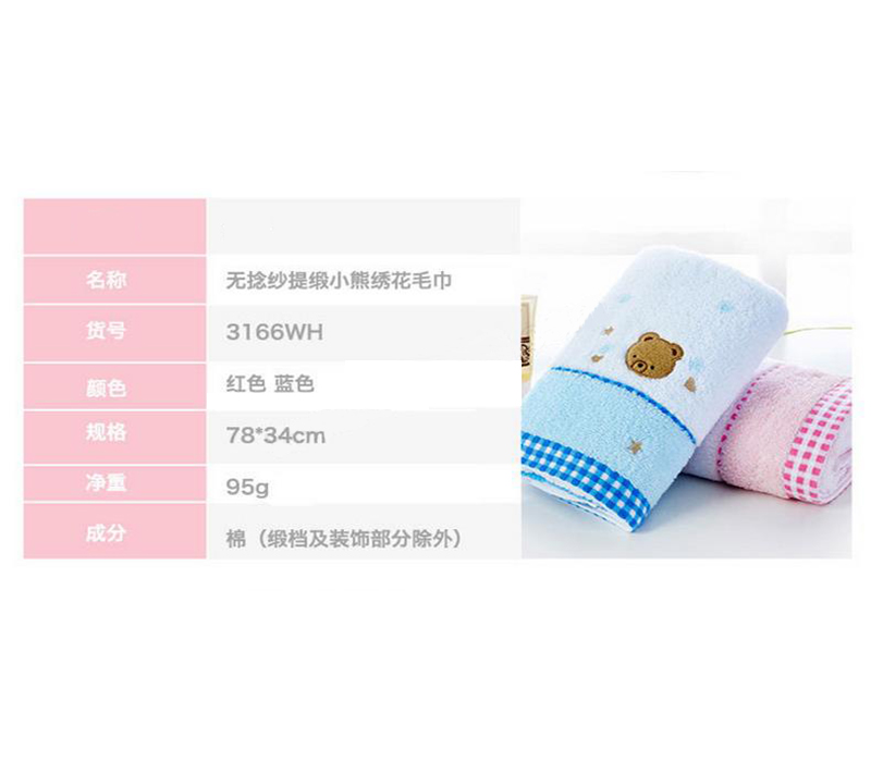 无捻纱提缎小熊绣花毛巾