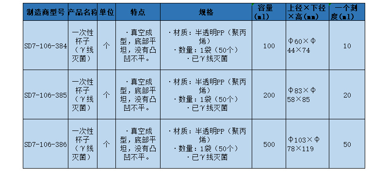 SLAMED 一次性杯子(γ线灭菌) V100-ST SD7-106-384