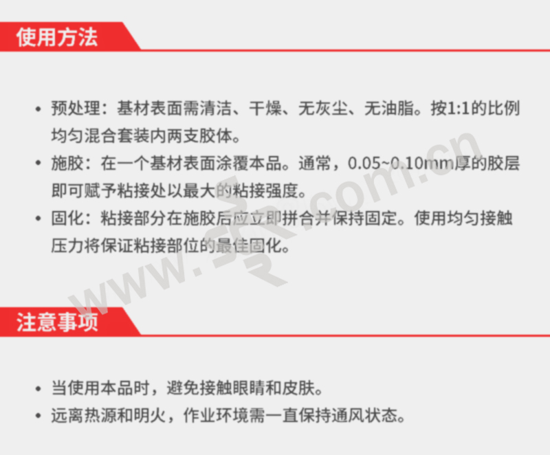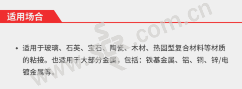 ·操作期长:90分钟凝胶,适合大面积和多部件粘接。