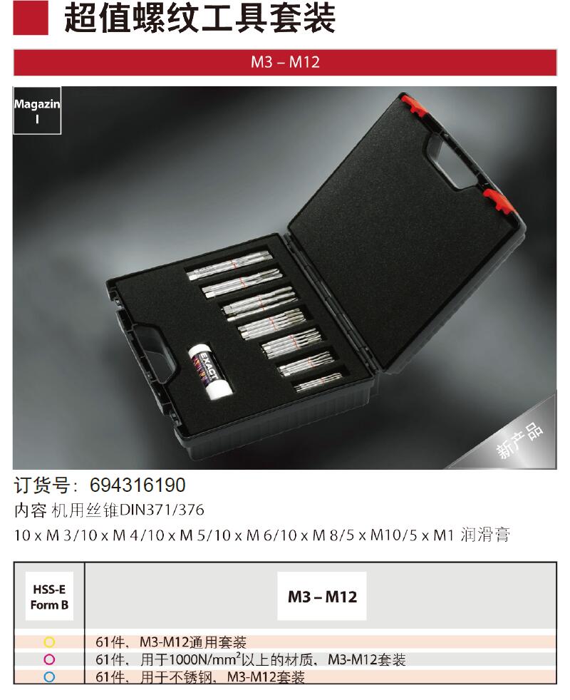 机用丝锥DIN371/376:10*M3/10*M4/10*M5/10*M6/10*M8/5*M10/5*M12 麻花钻:10*2.5mm/10*3.3mm/10*4.2mm/10*5.0mm/10*6.8mm/5*8.5mm/5*10.2mm 锪钻:Φ6.3/10.4/12.4mm 润滑膏