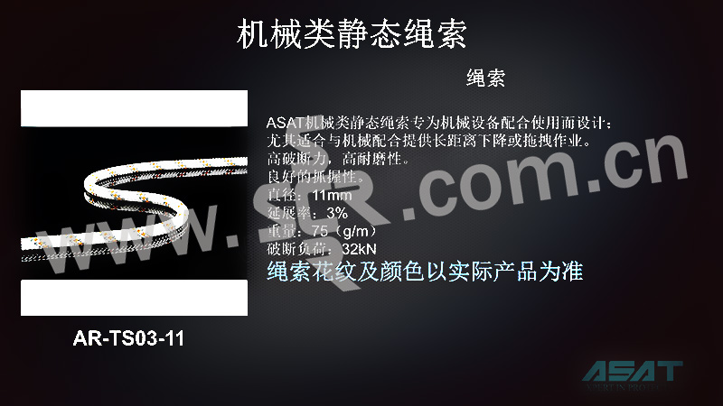 ASAT/阿萨特 机械类静态绳索 AR-TS03-11-定制 长度可定制 直径11mm 1米