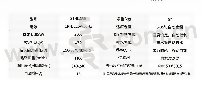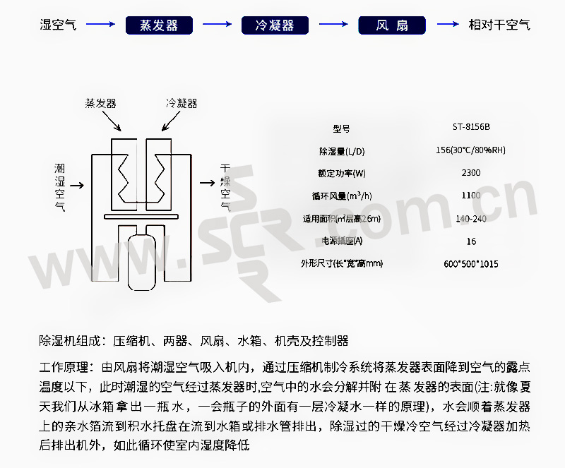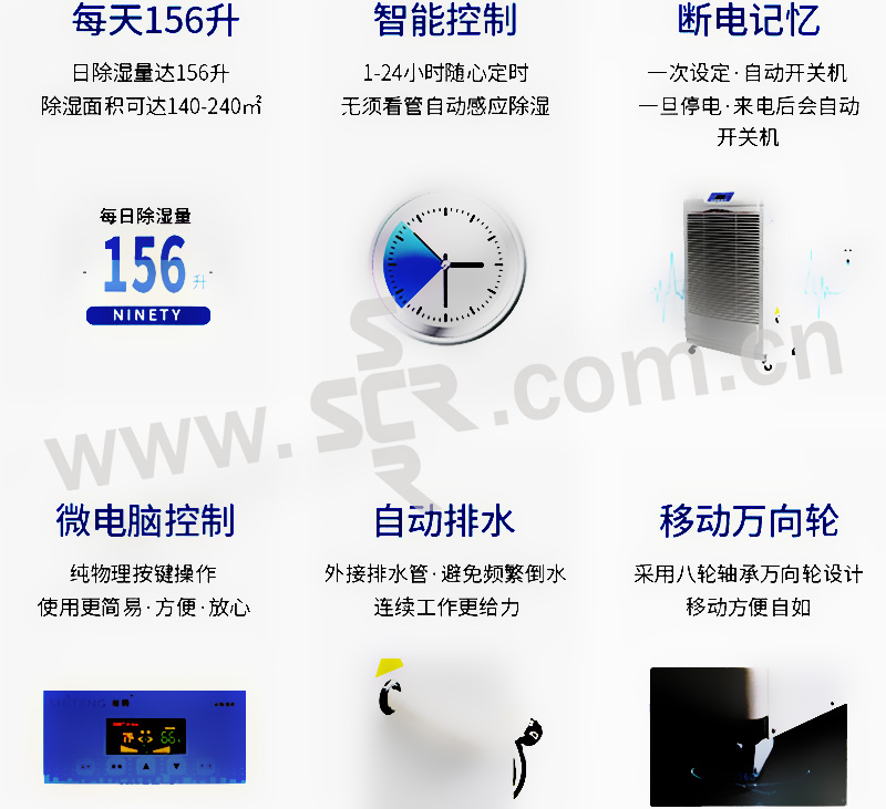 SHITENG/湿腾 工业除湿机 ST-8156B 除湿量156L/h 使用面积140~240m2(层高低于2.6m) 水管自动排水 1台