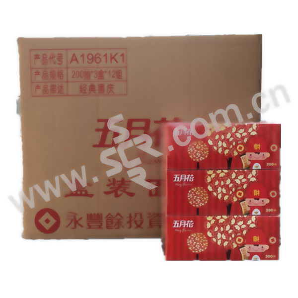 MAYFLOWER/五月花 盒装面纸 A1961K1 双层 200×190mm 200抽 内装36盒 无香 1箱