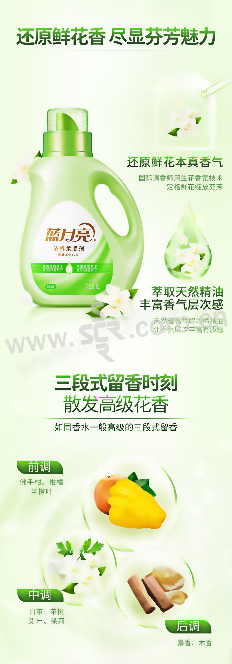 LYL/蓝月亮 白茶香浓缩柔顺剂 6902022144561 1kg 1瓶
