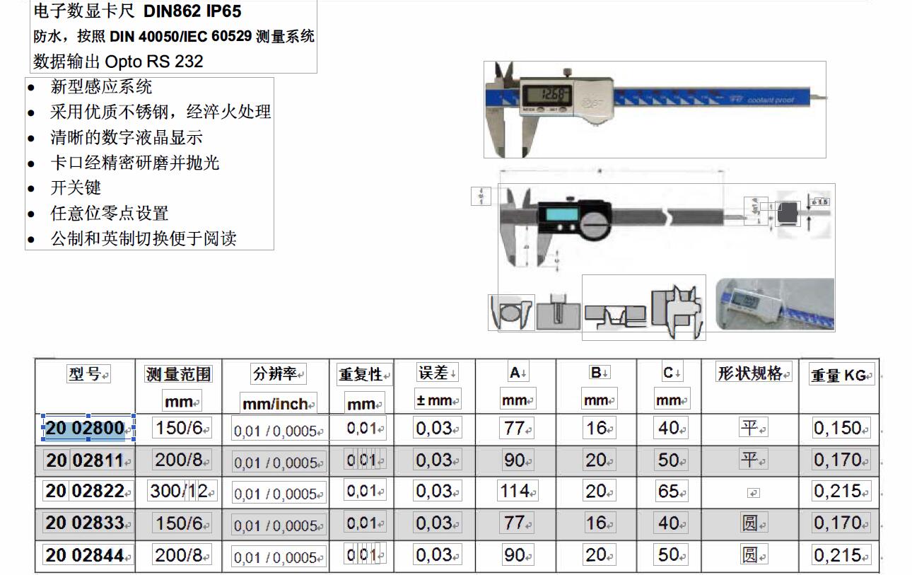 ·电子数显卡尺DIN862IP65