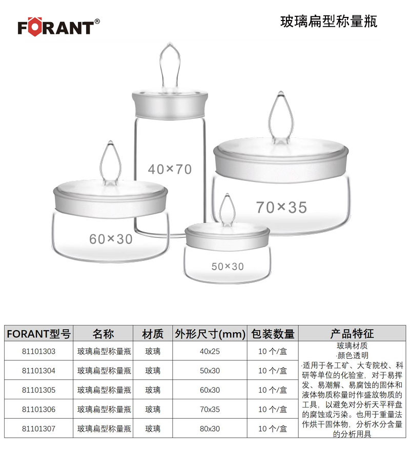·玻璃材质 ·颜色透明 ·对于易挥发、易潮解、易腐蚀的固体和液体物质称量时作盛放物质的工具, 以避免对分析天平秤盘的腐蚀或污染