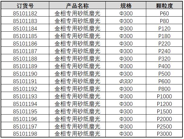 ·耐水型砂纸,带粘贴后背,可将砂纸,直接固定在磨盘上 ·磨料:黑碳化硅 ·砂纸按粒度分类:80#-5000#。 ·按直径分类:200毫米到305mm.