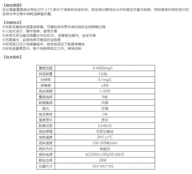 ·采用无汞压差法测量水中的BOD,全智能化操作,安全可靠