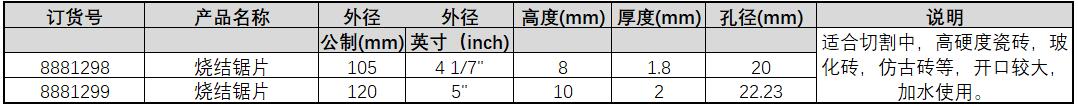·适合切割中,高硬度瓷砖,玻化砖,仿古砖等 ·开口较大,加水使用。