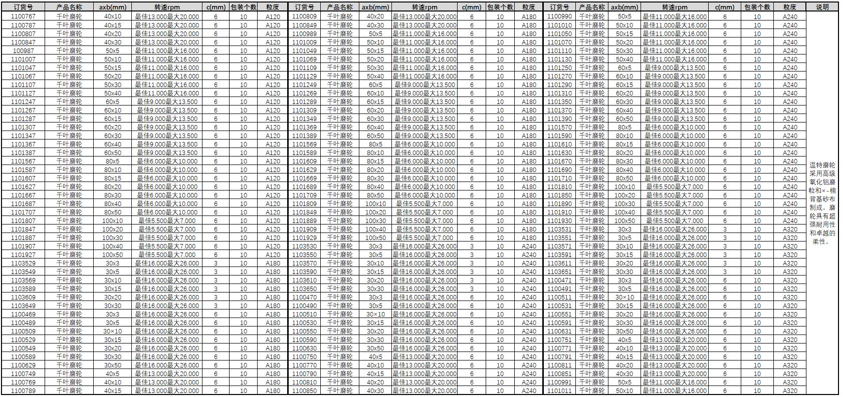 ·温特磨轮采用氧化铝磨粒和×-棉背基砂布制成。磨轮具有超强耐用性和的柔性。