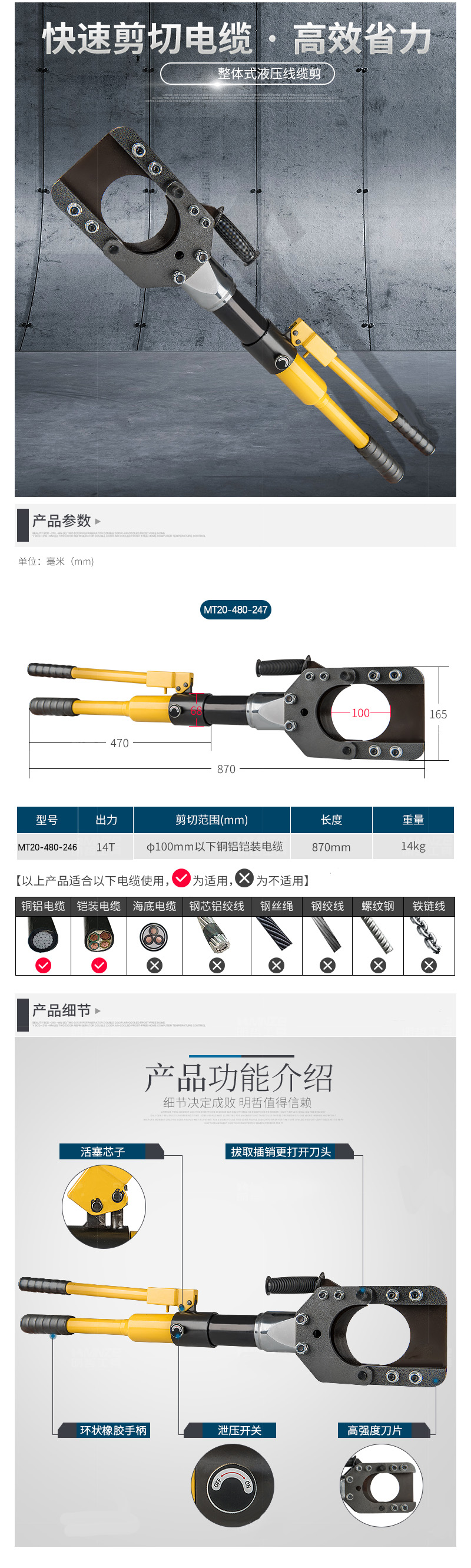 整体液压线缆断线钳铠装电缆剪刀