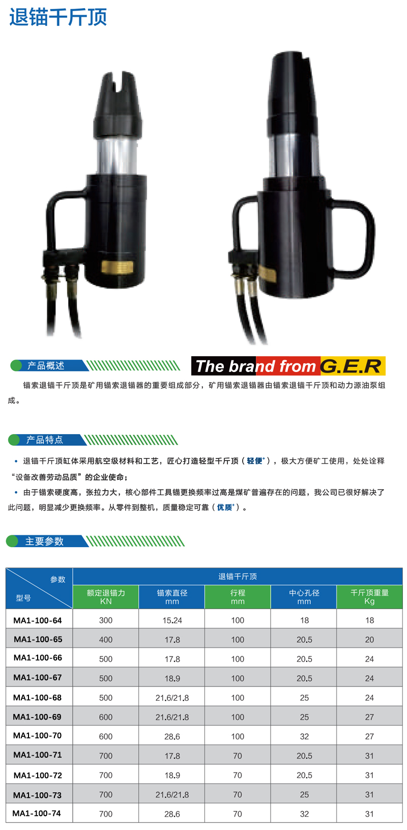 规格:  额定退锚力 500KN 制造商型号:  MA1-100-67