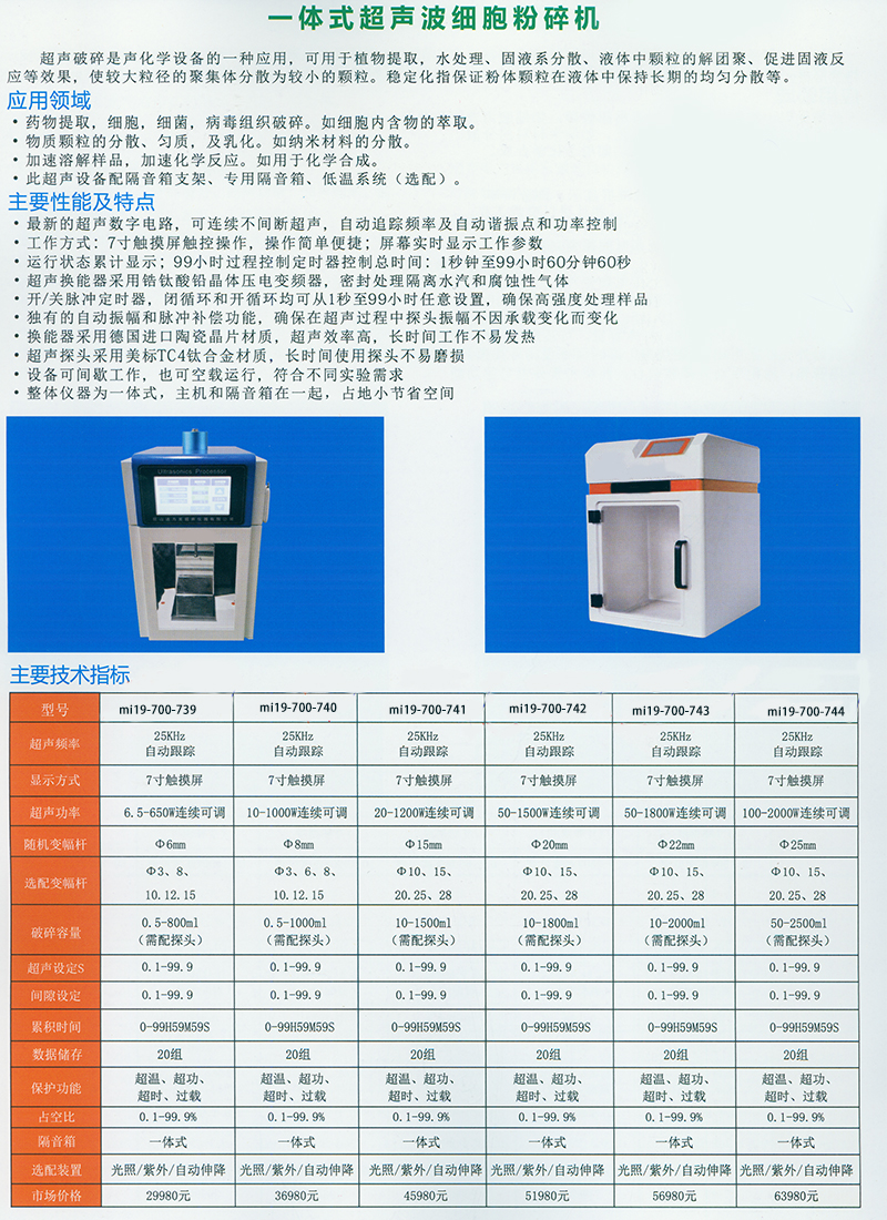 订货号 制造商型号 处理量 频率 随机变幅杆 超声功率 价格 购物车