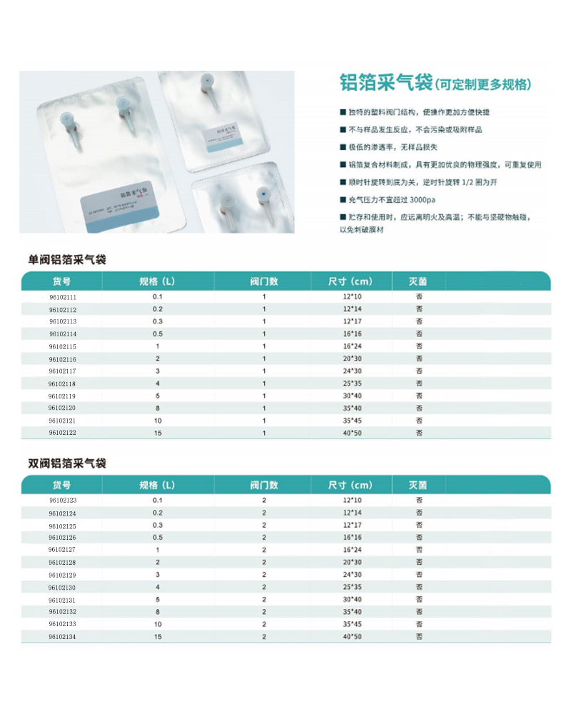 H13170 96102120 塑料阀门 铝箔复合材质 充气压力不宜超过3000Pa 8L 8 35×40 85.97