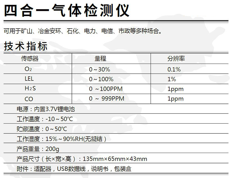 当前位置:首页 > 仪器仪表 > 环境测量 > 气体检测仪 > 四合一气体检测仪
