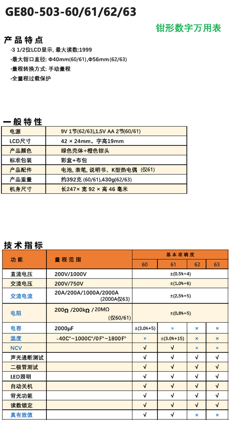钳形数字万用表