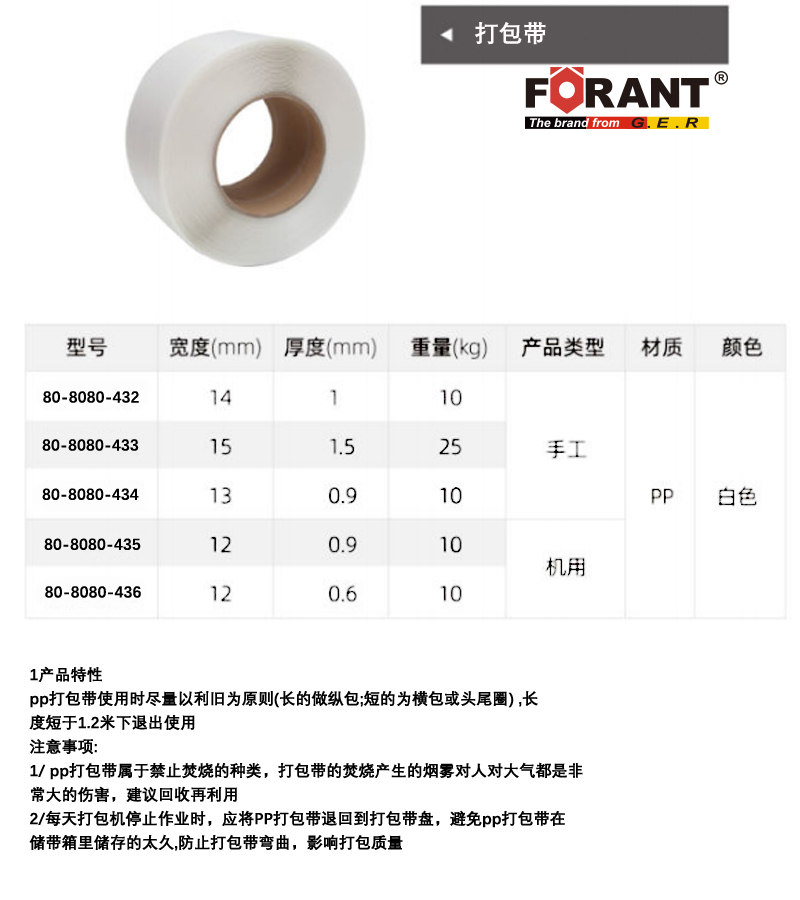 A41089 80-8080-436 机用 PP 12mm 0.6mm 10kg 321.21