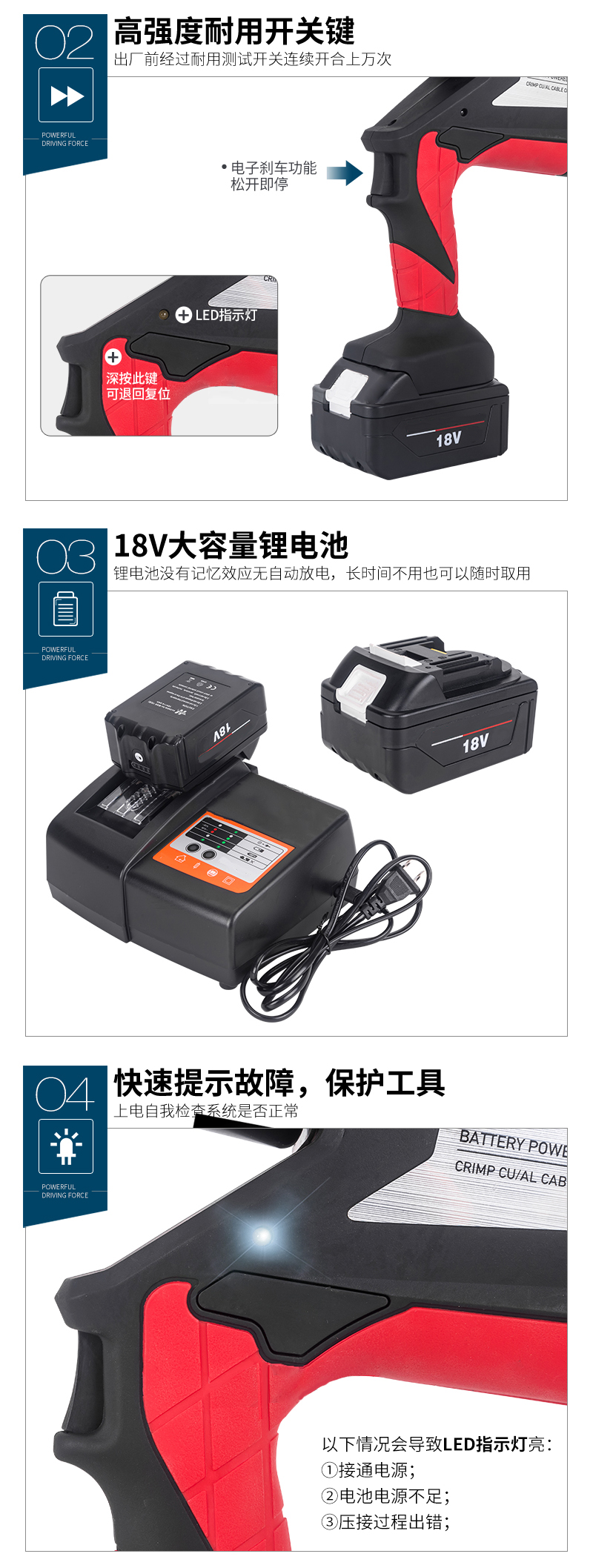 ·18V 3·0Ah高性能锂电池,一个开关可以控制所有工具功能