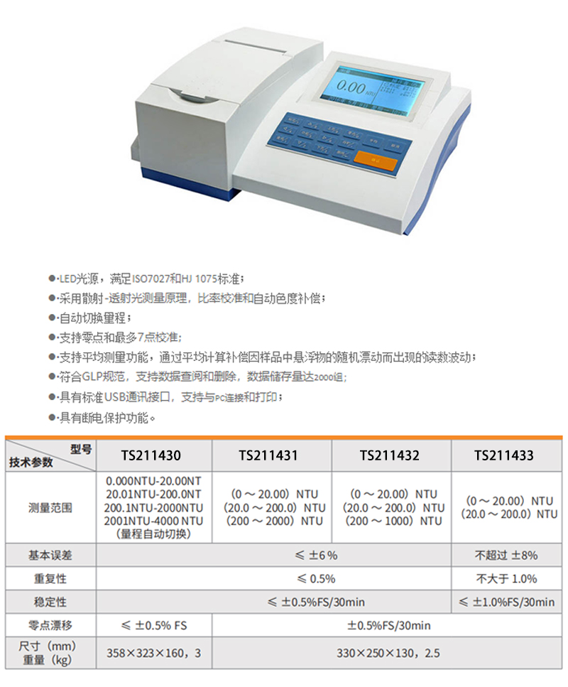 0.00NTU0~20.00NT/20.1NTU~200.0NT/200.1NTU~2000NTU/200NTU~4000NTU