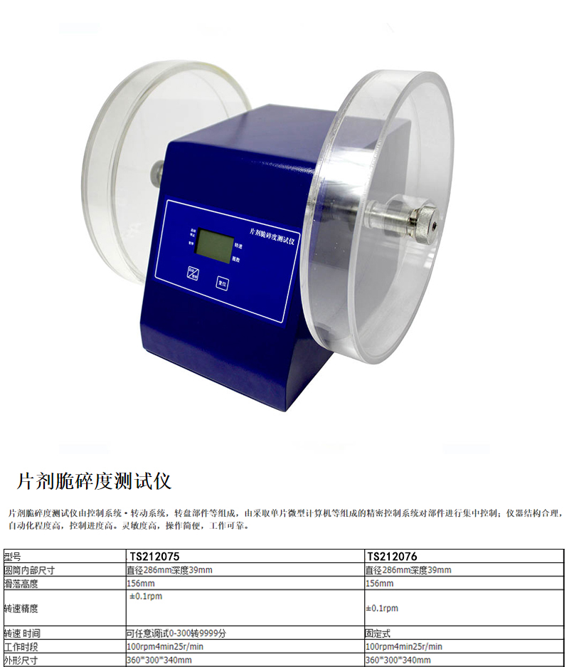 ·脆碎度测试仪用于检查非包衣片的脆碎情况及其他物理强度,如压碎强度等。
