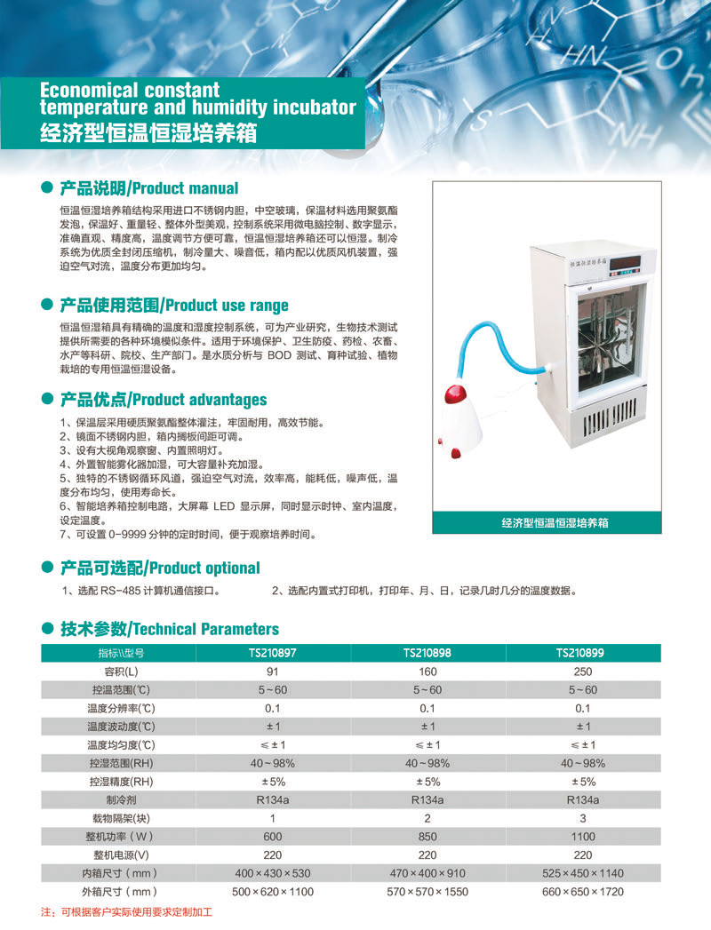 ·内箱装有风机形成微气流循环,提高箱内温度均匀度。