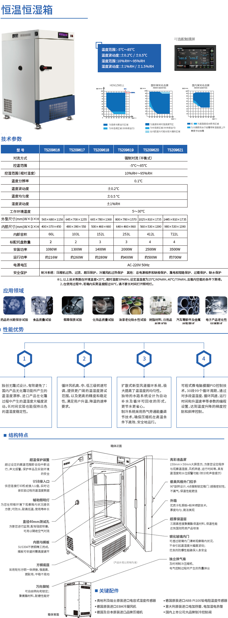 控温范围-5~70℃内部容积722L外形尺寸1445×810×1735mm