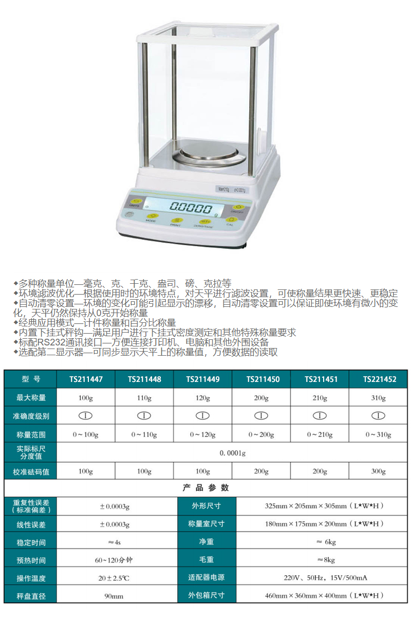 规格:  最大称量120g 制造商型号:  TS211449