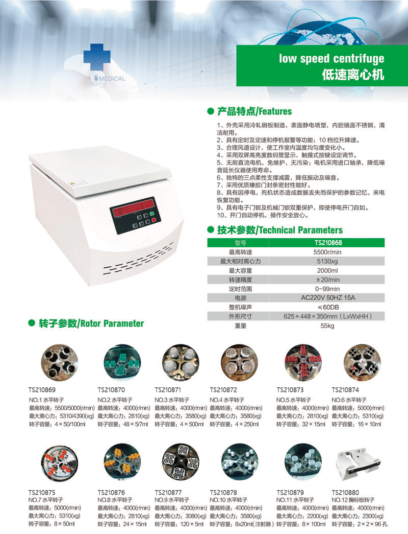 H62122 TS210762 300~4500rpm 2490xg 8×15ml/12×10ml 5997.08