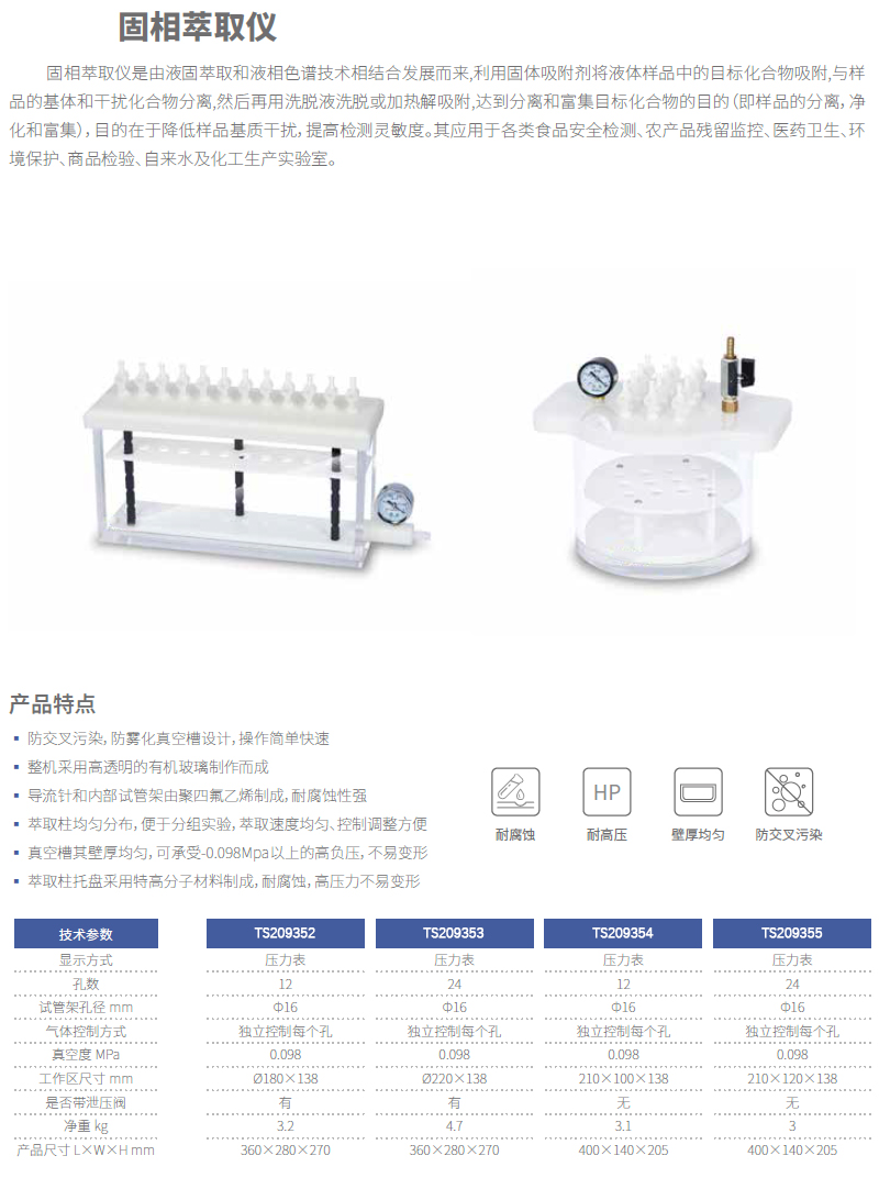 ·固相萃取仪是由液固萃取和液相色谱技术相结合发展而来,利用固体吸附剂将液体样品中的目标化合物吸附,与样品的基体和干扰化合物分离,然后再用洗脱液洗脱或加热解吸附,达到分离和富集目标化合物的目的(即样品的分离,净化和富集),目的在于降低样品基质干扰,提高检测灵敏度