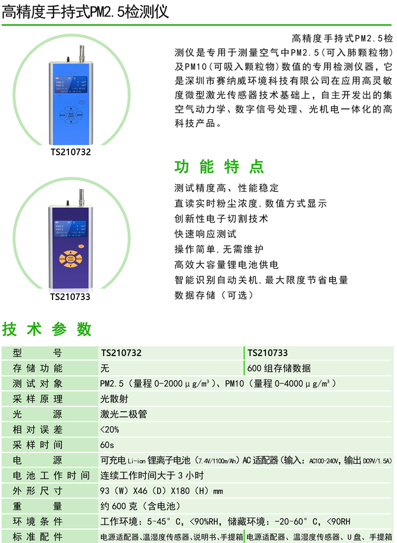 .PM2.5浓度和环境温度一屏双显,一目了然