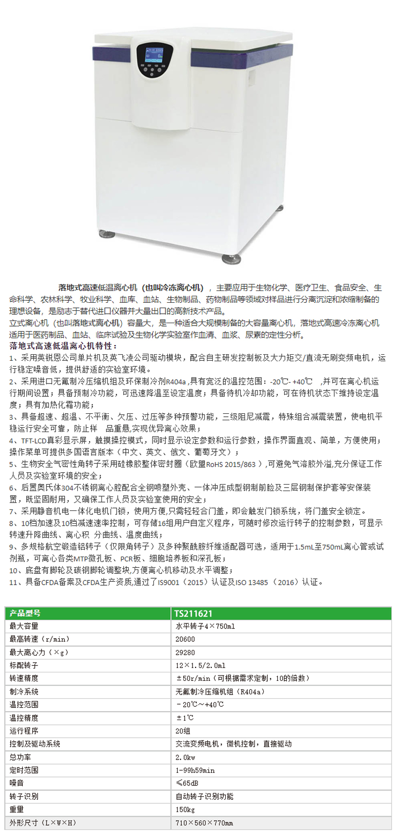H62721 TS211621 20600rpm 29280×g 4×750ml 102648.00