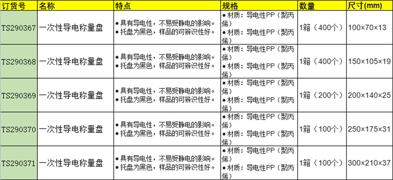 · 具有导电性,不易受静电的影响。 · 托盘为黑色,样品的可辨识性好。