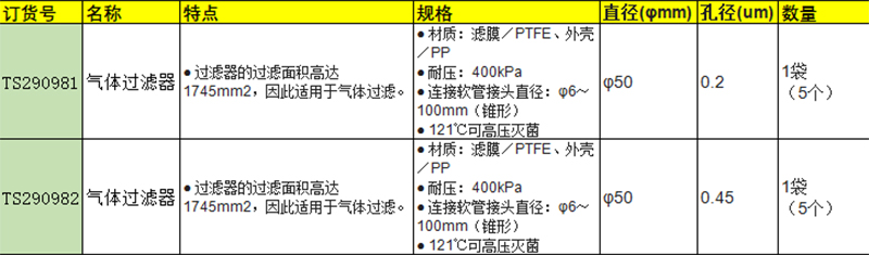 · 过滤器的过滤面积高达1745mm2,因此适用于气体过滤。