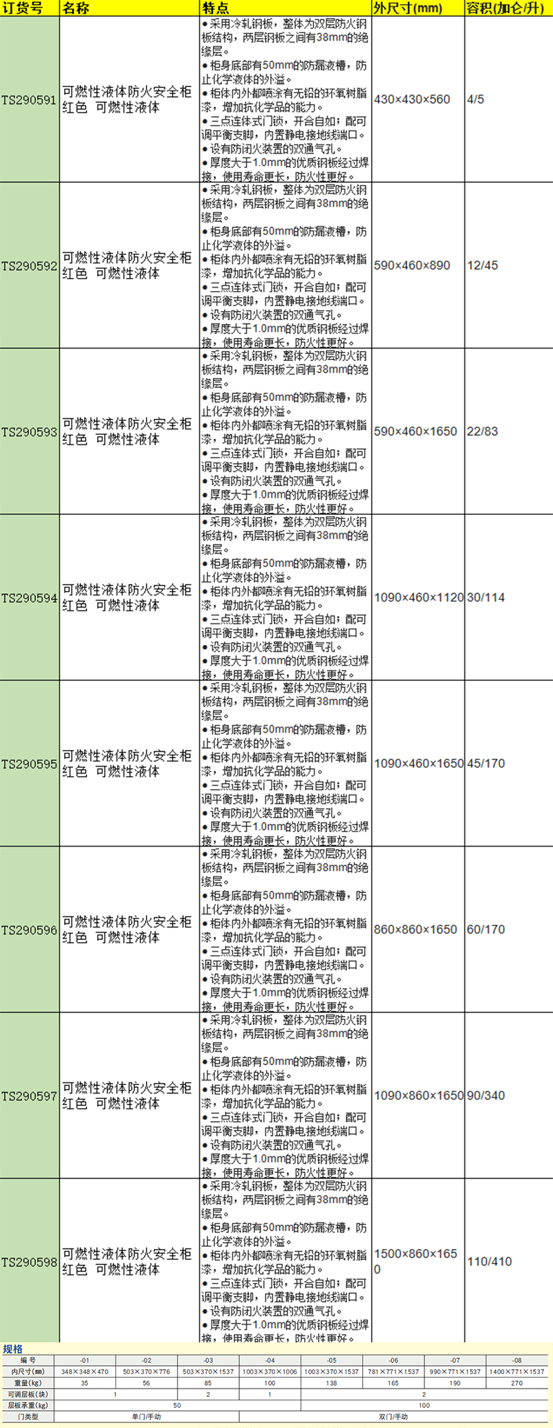 订货号 制造商型号 材质 容积 外尺寸(高×宽×深) 自重 柜门数 闭门方式 可调层板数量 柜门数量和类型 可调节架数量 价格 购物车
