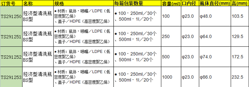 瓶体・喷嘴/LDPE(低密度聚乙烯)、盖子/HDPE(高密度聚乙烯)