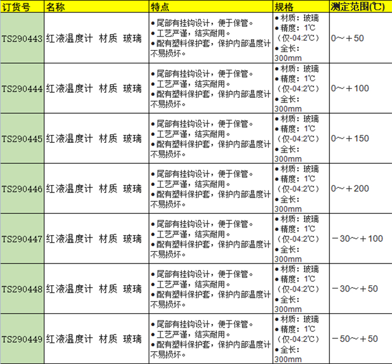· 尾部有挂钩设计,便于保管。 · 工艺严谨,结实耐用。 · 配有塑料保护套,保护内部温度计不易损坏。