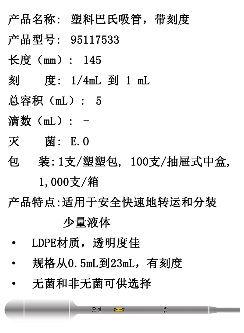 带刻度塑料巴氏吸管