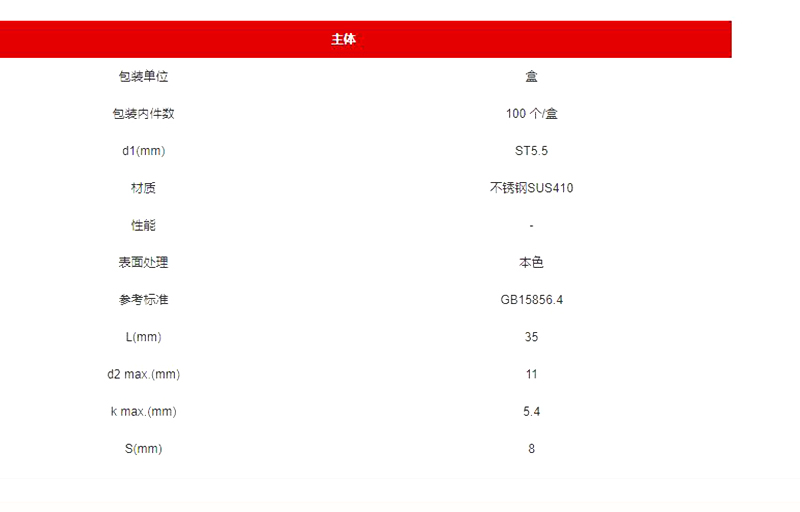 符合标准:DIN7504K 可参照其他标准:GB15856.4 材质:不锈钢410 表面处理:本色