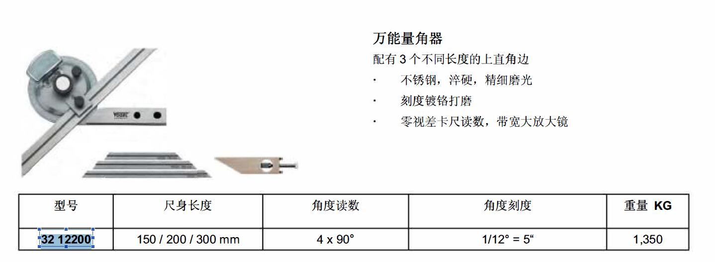 ·万能量角器 ·顶级质量. 适用于校准目的不锈钢. 滓硬. 经打磨 ·刻度锁铭打磨 ·零视差卡尺读数. 带宽大放大镜带微调功能
