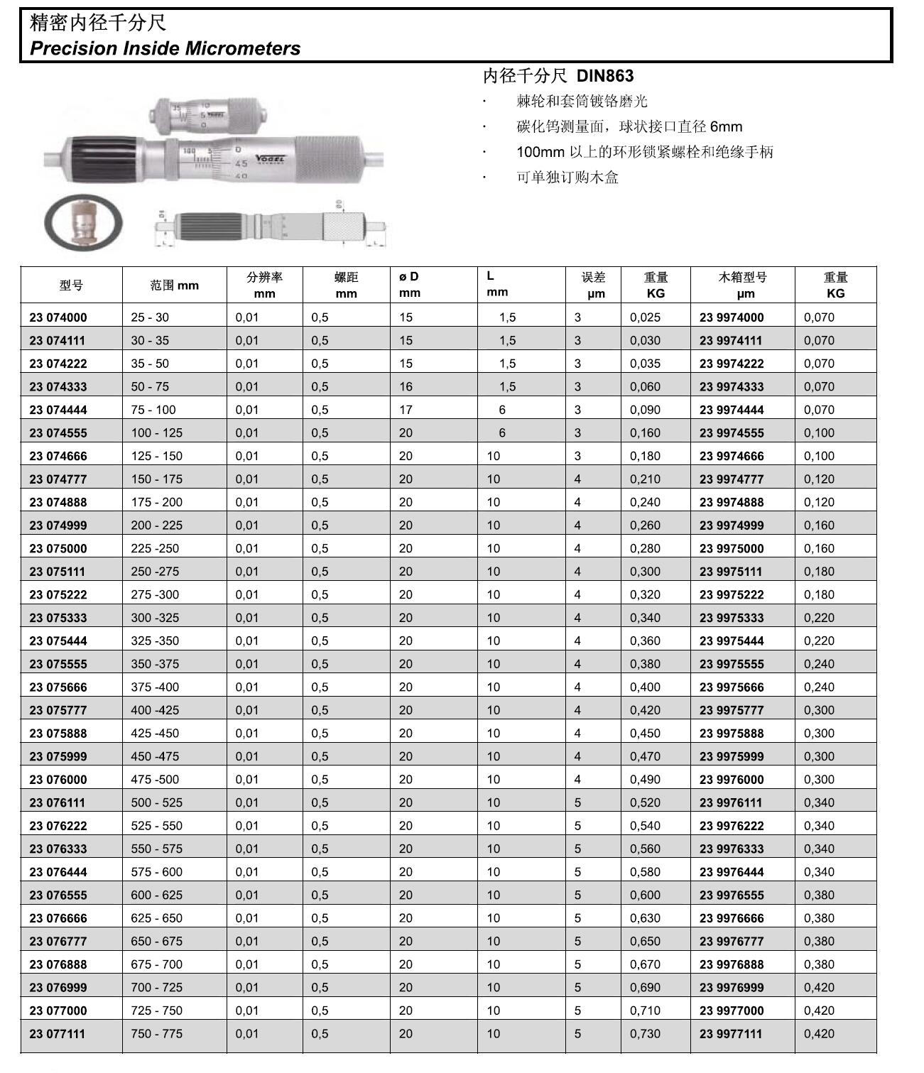 ·棘轮和套筒锁铭磨光 ·碳化鸽测量面.球状接口直径6mm ·100mm 以上的环形锁紧螺栓和绝缘手柄可单独订购木盒
